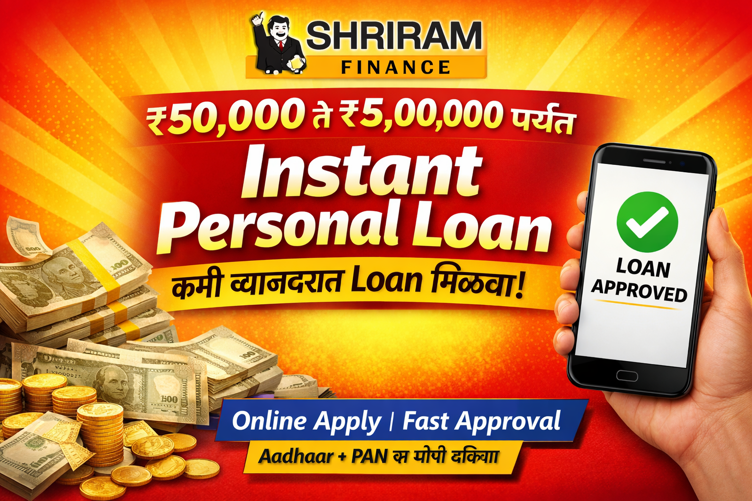 Shriram Finance Limited Personal Loan : कमी व्याजदरात मिळवा Instant Personal Loan – अर्ज प्रक्रिया, फायदे आणि आवश्यक कागदपत्रे