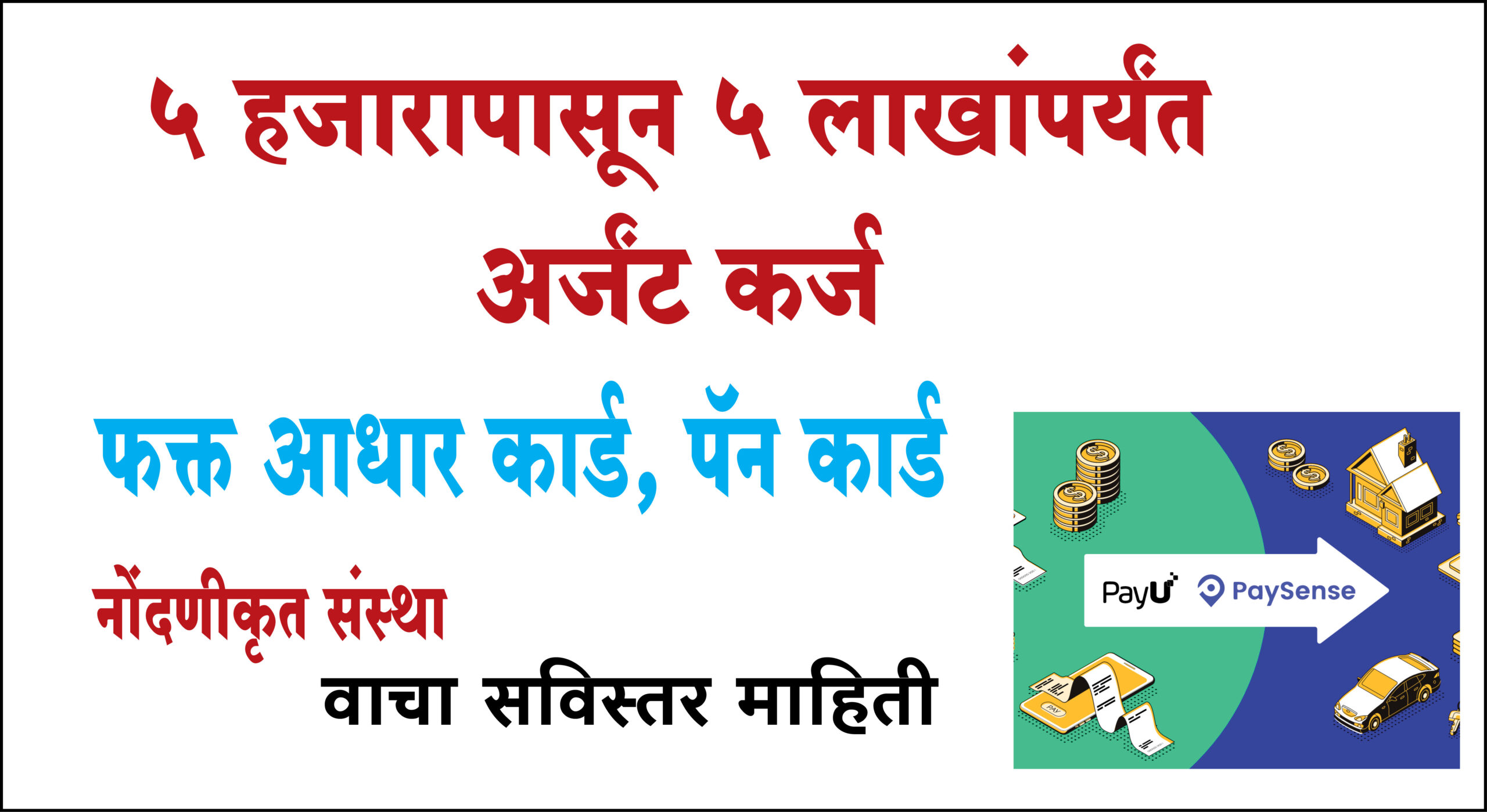 PaySens (Lazy Pay) : 5 हजारापासून 5 लाखांपर्यंत अर्जंट कर्ज : फक्त आधार कार्ड, पॅन कार्ड: नोंदणीकृत संस्था