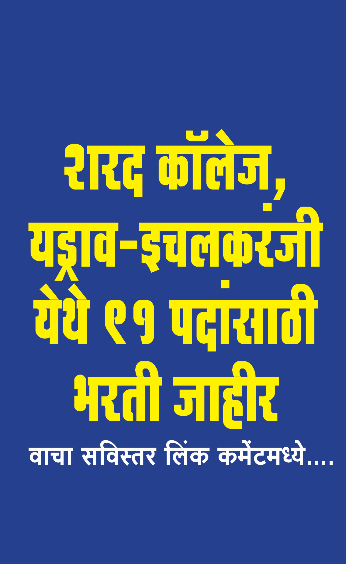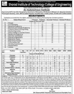 श्री शामराव पाटील (यड्रावकर) एज्युकेशनल अँड चॅरिटेबल ट्रस्ट संचलित Sharad Institute of Technology College of Engineering, यड्राव (इचलकरंजी), जिल्हा कोल्हापूर येथे विविध अध्यापन व बिगर-अध्यापन पदांसाठी भरती जाहीर करण्यात आली आहे. हे महाविद्यालय AICTE मान्यताप्राप्त, महाराष्ट्र शासन मान्य, DBATU संलग्न व NAAC ‘A’ ग्रेड प्राप्त स्वायत्त संस्था आहे.